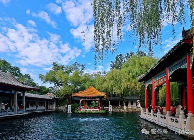 游覽乾隆皇帝稱之為“天下第一泉”的【5A 趵突泉】(瀏覽時(shí)間約 1 小時(shí)),趵突泉水分三股,晝夜噴涌,水盛時(shí)高達(dá)數(shù)尺。所謂“趵突”,即跳躍奔突之意,反映了趵突泉三窟迸發(fā),噴涌不息的特點(diǎn)?!磅劳弧辈粌H字面古雅,而且音義兼顧。不僅以“趵突”形容泉水“跳躍”之狀、噴騰不息之勢(shì);同時(shí)又以“趵突”摹擬泉水噴涌時(shí)“卜嘟”、“卜嘟”之聲可謂絕妙絕佳。